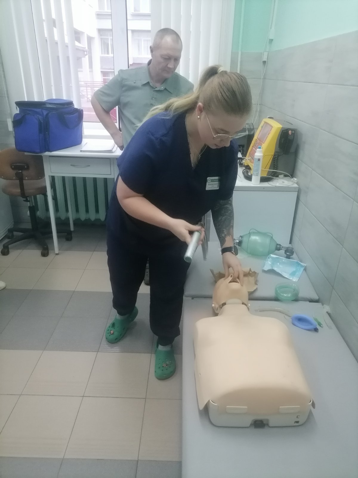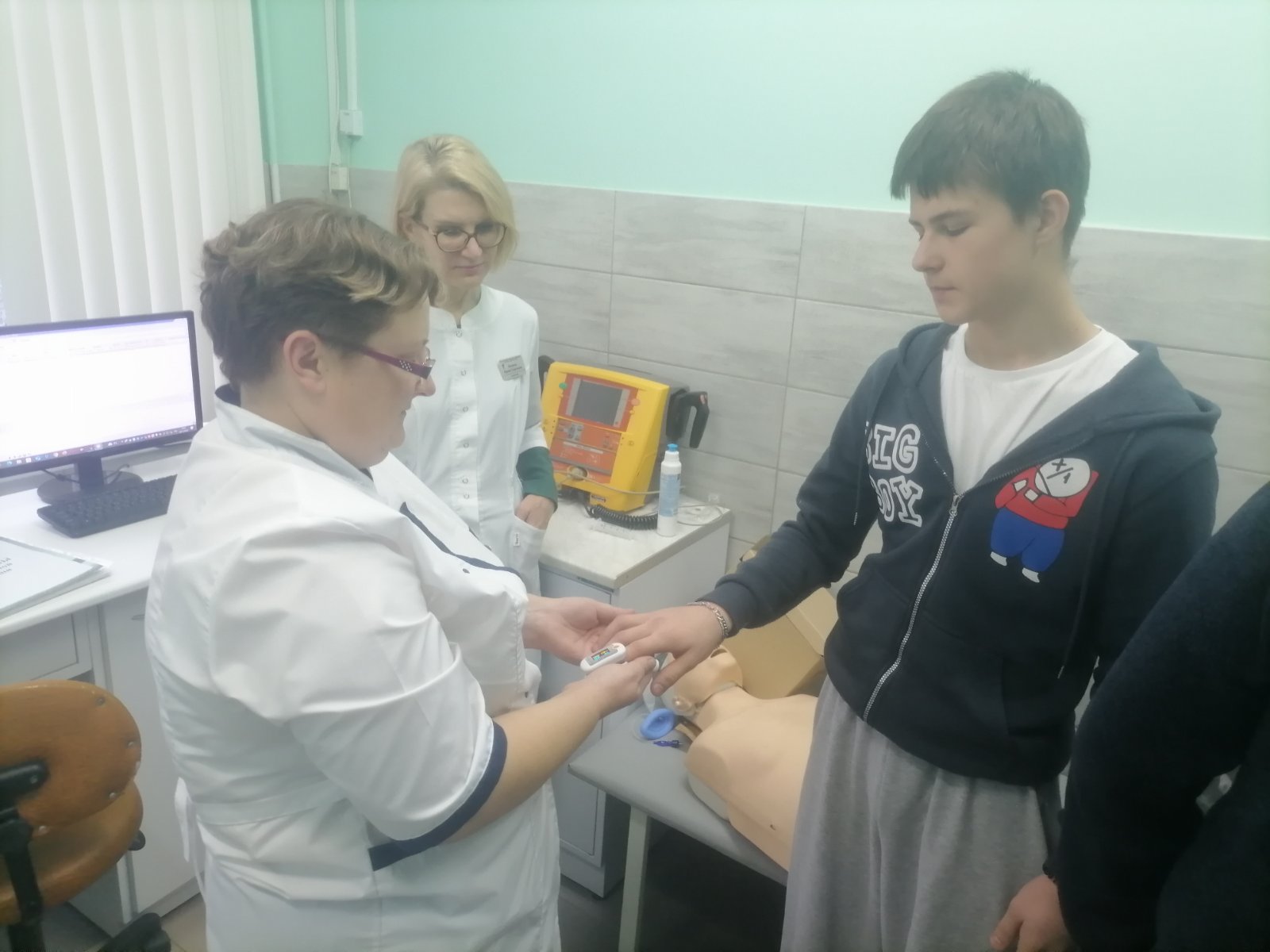 Для ребят проведены мастер-классы от врача анестезиолога-реаниматолога Анастасии Витук и врача общей практики (заведующего поликлиникой) Олега Валентиновича Дидуха по проведению сердечно-легочной реанимации.